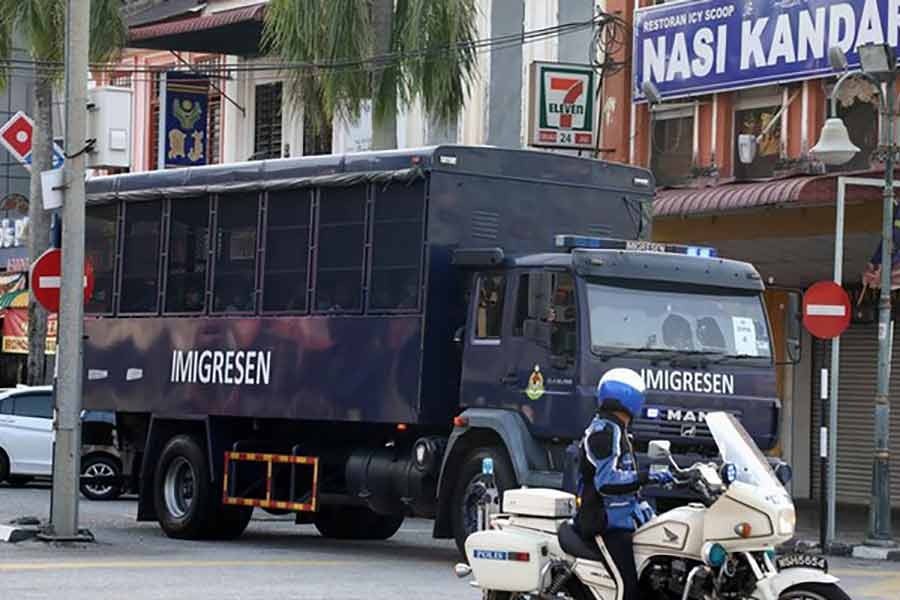 Myanmar migrants to be deported from Malaysia are seen inside an immigration truck in Lumut of Malaysia on Tuesday -Reuters photo
