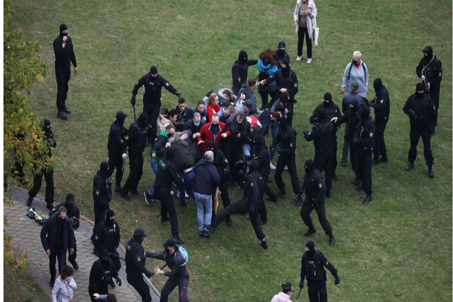 Security forces in Belarus detained dozens of protesters on Sunday and used force, including water cannon and batons, to break up crowds demanding a new presidential election, TV footage showed, reports Reuters.